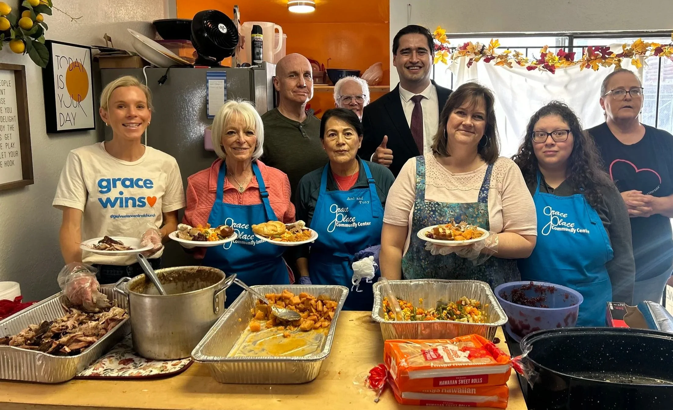 We have hot free meals every day we’re open! Our meals are 100% prepared and purchased by our volunteers and served restaurant style.